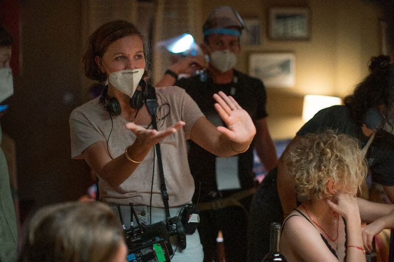 Director Maggie Gyllenhaal on the set of THE LOST DAUGHTER
