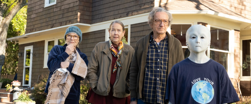 Jules follows Milton (Ben Kingsley) who lives a quiet life of routine in a small western Pennsylvania town, but finds his day upended when a UFO and its extra-terrestrial passenger crash land in his backyard. Before long, Milton develops a close relationship with the extra-terrestrial he calls “Jules.” Things become complicated when two neighbors (Harriet Sansom Harris and Jane Curtin) discover Jules and the government quickly closes in. What follows is a funny, wildly inventive ride as the three neighbors find meaning and connection later in life – thanks to this unlikely stranger.