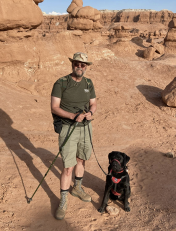 Chaplain David Berube is a retired Lt. Colonel with 21 years of service in the United States Air Force and the Massachusetts Air National Guard. In his civilian career, David is a retired Oak Bluffs Police Officer and local church pastor, including at the Federated Church of Martha’s Vineyard. Vegas is a four-year-old, world class Service Dog from NEADS, in Princeton, MA. After eighteen months of rigorous training and screening, he teamed with David in April of 2021 to provide grounding tasks for his daily life.