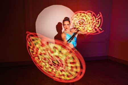 Prepare to be amazed by Miss Molly Dazzle’s epic glowing entertainment. As seen at First Friday Vineyard Haven and the Martha’s Vineyard Ag Fair. Miss Molly Dazzle WOWs guests with a variety of acts including high-level epic hula hooping (1-8 hoops), customized smart poi, juggling clubs, dragon staff, and more!