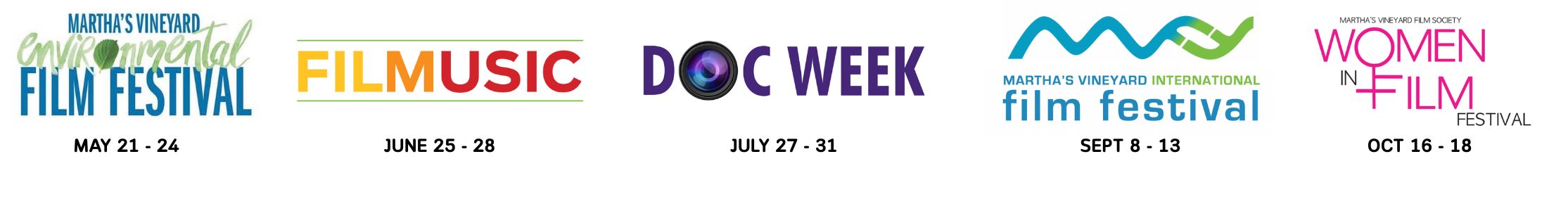 The 21st Annual  Martha’s Vineyard International Film Festival will be held September 8-13, 2026. Our 10th annual SPECTRUM Film Series will be held in June over the course of several weeks in recognition of PRIDE month. Our 12th annual MV Environmental Film Festival will be held on May 21-24. Our 14th annual FILMUSIC Festival will take place from June 25-28. The 12th annual Documentary Week will be held July 27-31. And finally, our 8th annual WOMEN IN FILM will occur on October 16-18th.